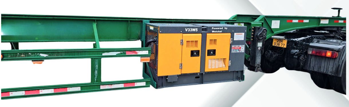 Một xe container lạnh cần công suất bao nhiêu kVA? Hầu hết lốc lạnh trên xe container tải trung–nặng cần 20–30 kVA. K33W5 30kVA đáp ứng dư công suất, đảm bảo lốc không bị thiếu điện ngay cả khi khởi động tải nặng. Tham khảo thêm hướng dẫn tính toán phụ tải máy phát điện tại Vinagenset.